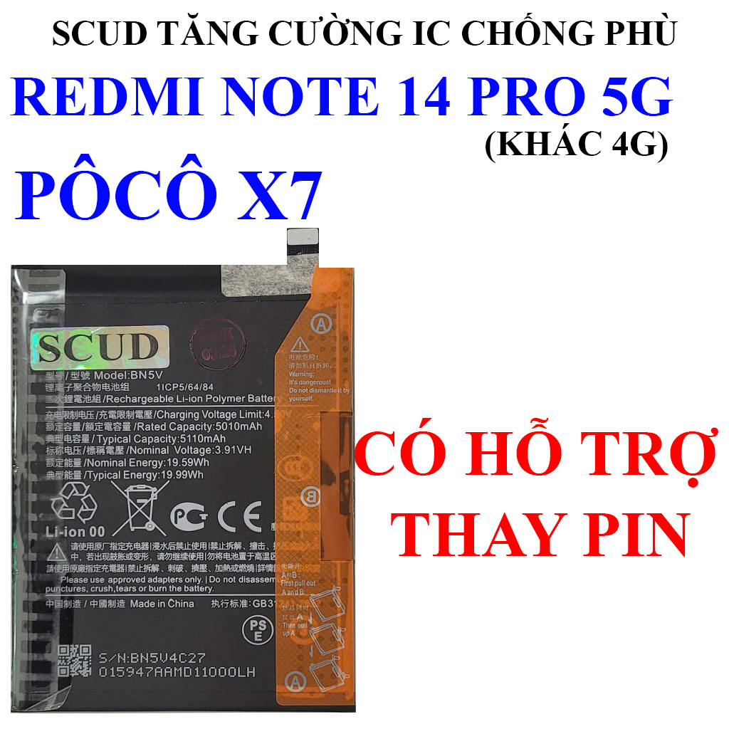 Pin SCUD/Webphukien cho Xiaomi Redmi Note 14 Pro, Poco X7 BN5V 5110 mAh